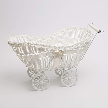 Hamper Pram Wicker Basket Baby Shower Natural Ribbon Amazon Co Uk
