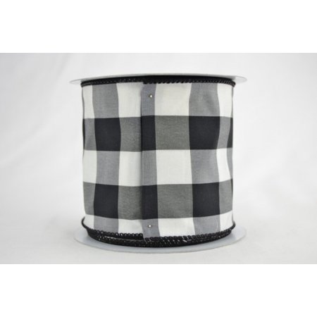 Ribbon Bazaar Wired Polyester Matte Buffalo Check 3 1 2 Inch Black