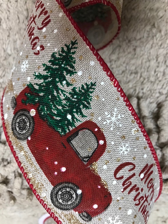 Red Truck With Christmas Tree Ribbon 10 Yards Ebay