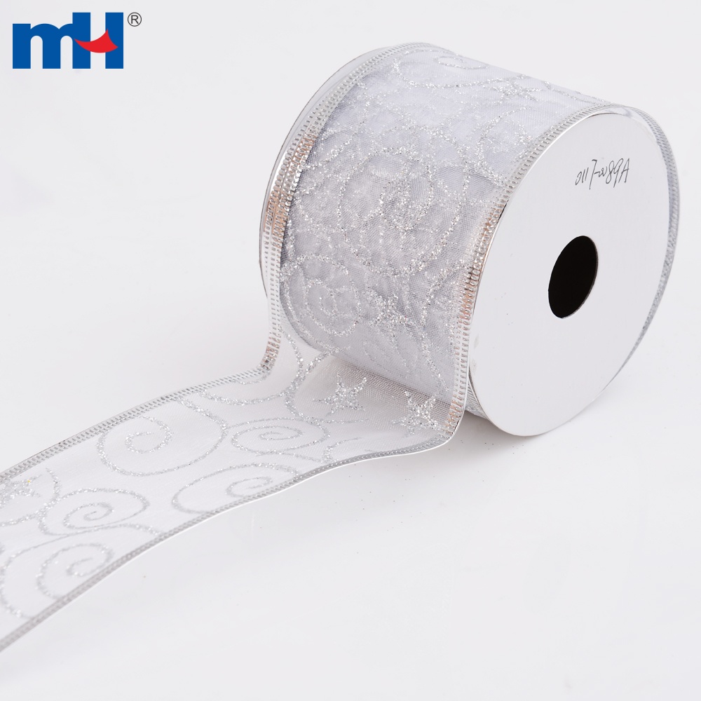 Silver Swirl Wired Edge Christmas Ribbon Ningbo Mh